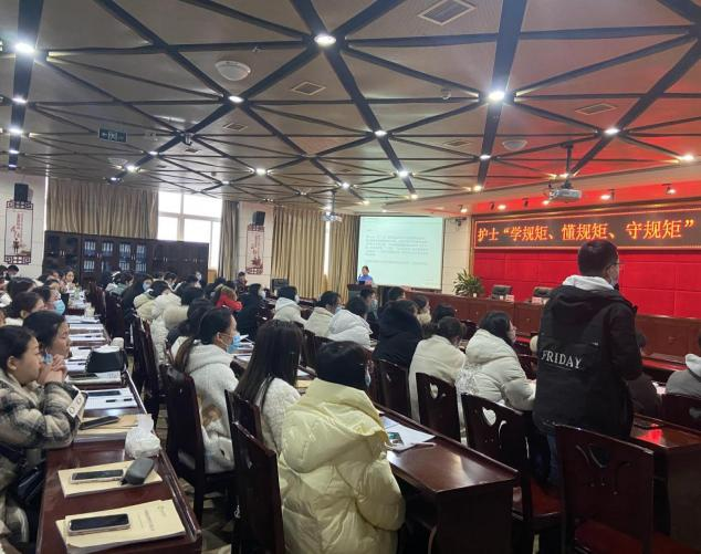 为进一步深化优质护理服务内涵,提升医院整体护理服务能力,12月29日,泸州市中医医院在11楼学术厅开展“贴近患者、服务先行”学规矩、懂规矩、守规矩的护士专场主题教育活动。医院纪委书记张天明作专题讲座,护理部主任袁红、临床各科室护士长、护士代表共计165人参加活动。