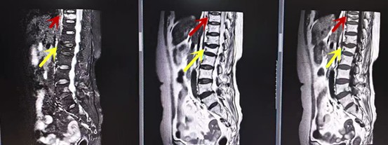红色箭头提示新鲜骨折,黄色箭头提示陈旧性骨折