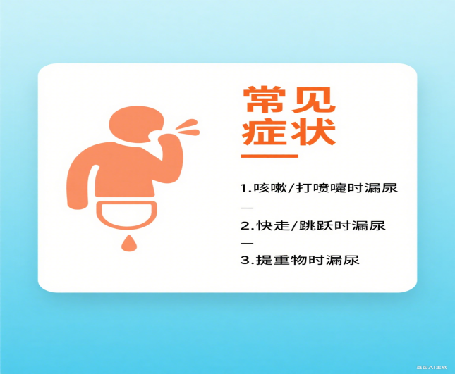 诱发场景:咳嗽、打喷嚏、大笑、提重物、跑步、快走、爬楼梯时出现不自主漏尿。