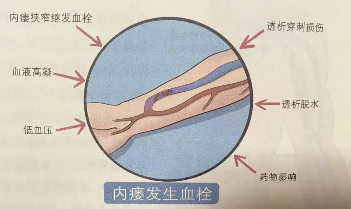 内瘘堵塞就是内瘘里有血栓形成了,血栓堵住了内血管,导致无法透析。