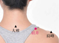 肩井穴:颈部根部到肩峰连线的中点。