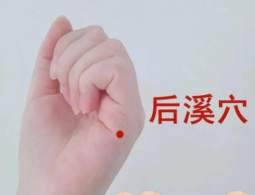后溪穴:握拳时,手掌小指侧皮肤褶皱的尖端。